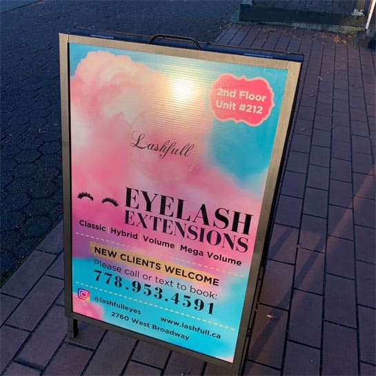 We are located on the 2nd floor of 2760 West Broadway. A commercial building located directly across from the Safeway and a few steps away from the 99 B-Line bus stop. Tip – our sidewalk sign is right in front of the entrance! When you enter the building please take the stairs at the front or the elevator towards the back up to the 2nd floor. Look for Unit 212 or the Lashfull logo on the door.